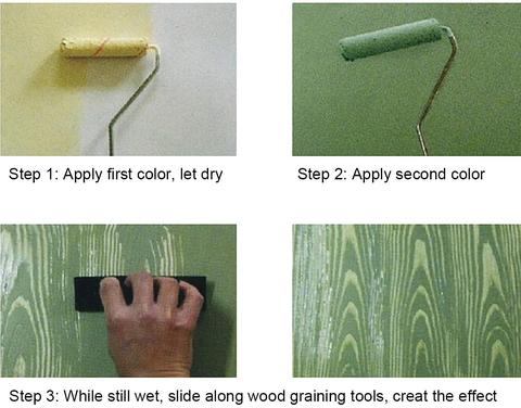Show you vivid wood grainer effects for DIY wall decoration with our Wood Grain Painting Tool Set. Use to decorate many surfaces: walls, wood, fabric. Can paint beautiful wood grain pattern on the wall.
