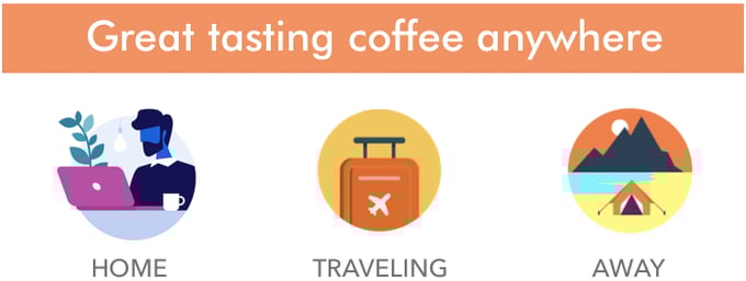 Press coffee filter directly brews coffee or tea in your mug to eliminate any mess. You can be your own barista anywhere. It does not require professional barista experience, speciality brewing equipments or messy cleanups. Simply add coffee grounds in the Press coffee filter, stir, wait and press the plunger, as simple as that.