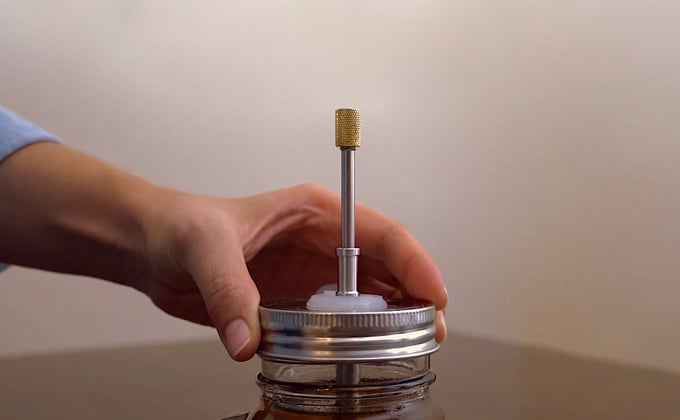 Add cold water in the jar. Place Press coffee filter in the jar, close lid and leave it in the fridge over night. Our system works by brewing coffee grounds in cold water. The stainless steel micron filter creates and preserves perfectly balanced, smooth tasting flavors every time by leaving behind the bitter oil and fatty acids.